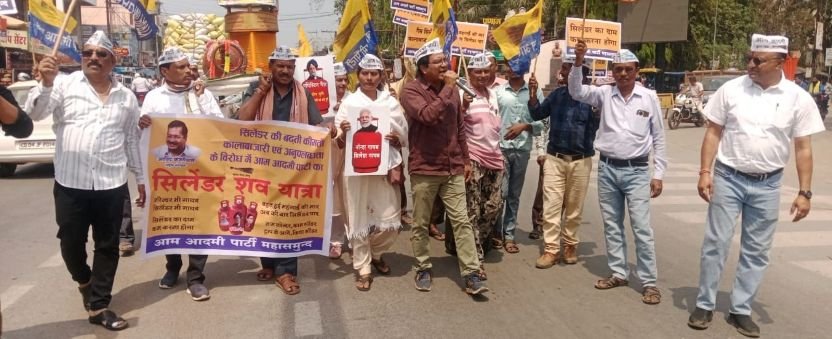 रसोई गैस की कमी के विरोध में आप का प्रदर्शन, सिलेंडर की ‘शव यात्रा’ निकालकर सौंपा ज्ञापन